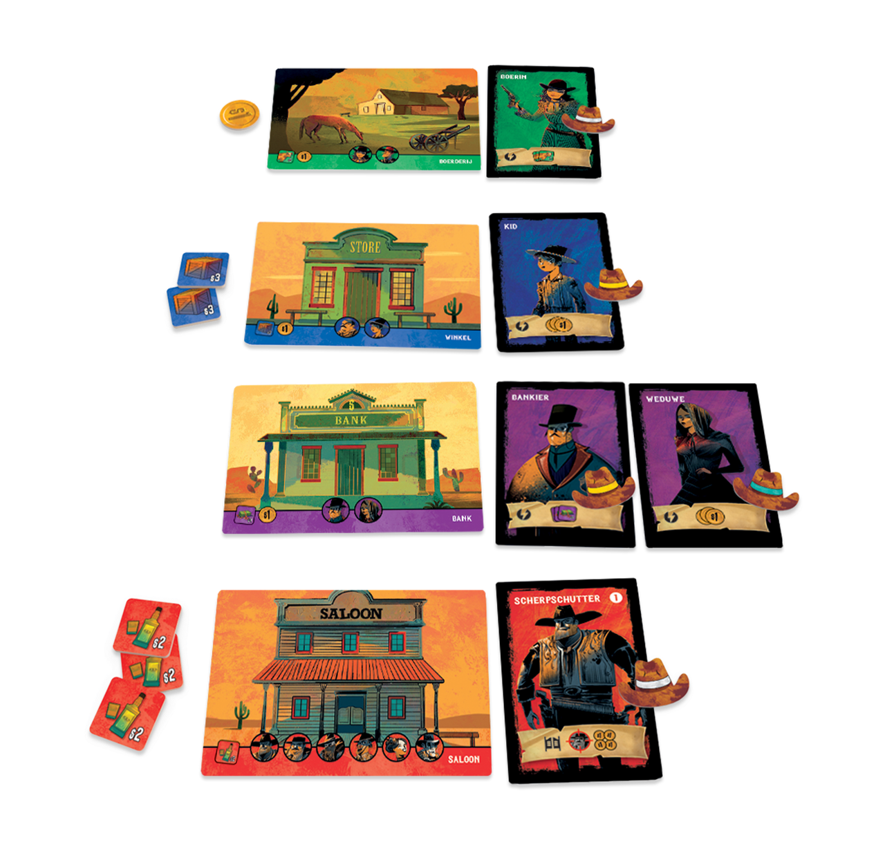 In het Wilde Westen gelden bijna geen wetten. Je kunt stelen, doden en het allerbelangrijkste: bluffen. Bluf de andere spelers af om jouw minst waardevolle karakters kwijt te raken en probeer de bluf van anderen te doorzien zodat je de juiste karakters kiest.