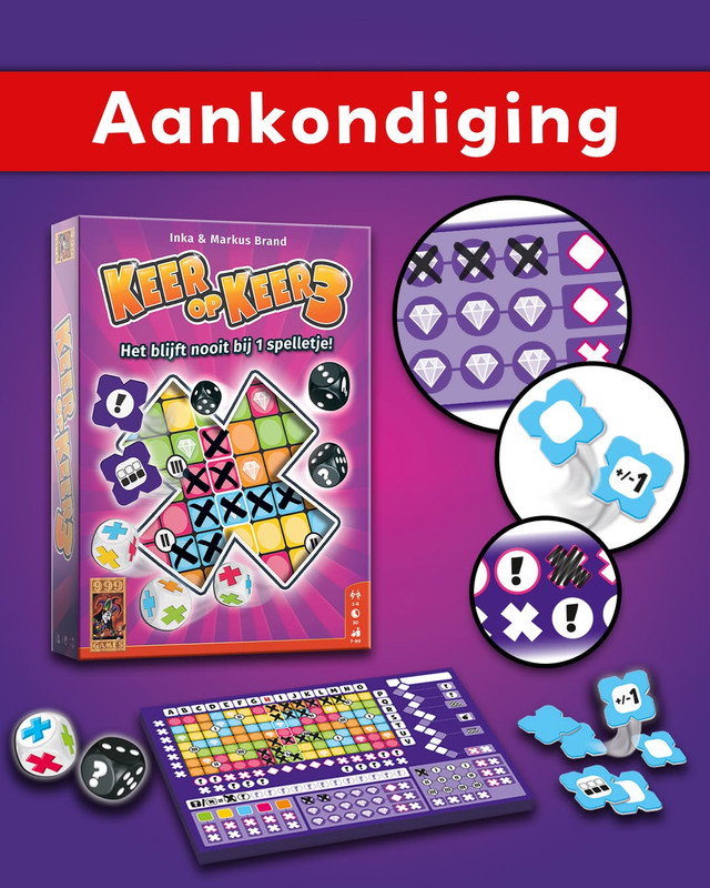 999 Games heeft Keer op Keer 3 aangekondigd! Naast de welbekende rijen en kolommen zitten er deze keer ook bommen, een pas spoor, nieuwe categorieen en nog meer in. De release voor deze roll & write staat gepland voor ergens in maart.